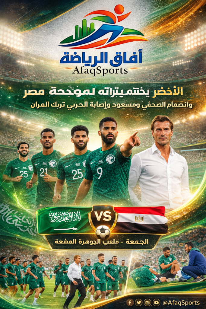 اختتم المنتخب السعودي الأول، مساء الخميس، استعداداته لمواجهة منتخب مصر، المقررة يوم الجمعة على ملعب مدينة الملك عبدالله الرياضية في جدة، وذلك ضمن معسكر “الأخضر” الإعدادي المقام خلال فترة أيام فيفا الدولية لشهر مارس، في إطار المرحلة الثالثة من برنامج التحضير لكأس العالم 2026.