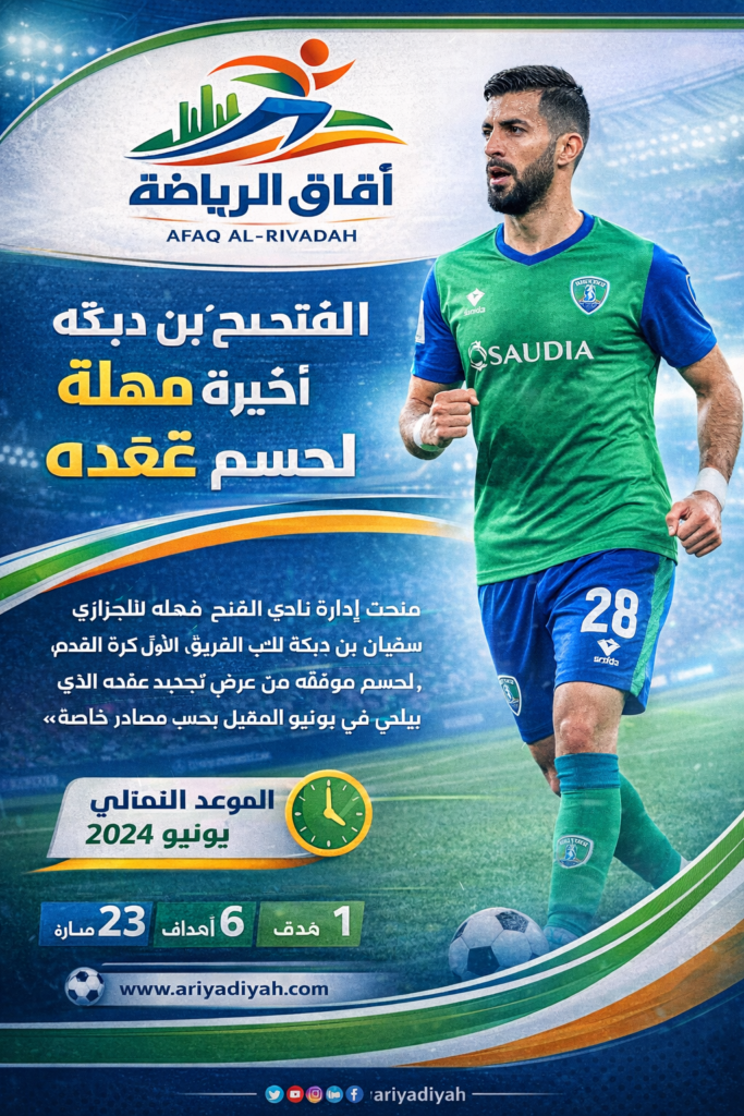 وأكدت المصادر ذاتها أن إدارة الفتح ترغب في استمرار لاعب الوسط لموسم إضافي، تقديرًا للمستويات التي قدمها مع الفريق، في وقت طلب فيه بن دبكة مهلة قبل الرد النهائي على العرض، سواء بالقبول أو الرفض.