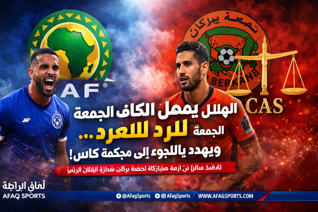 أمهل نادي الهلال السوداني الاتحاد الأفريقي لكرة القدم «الكاف» حتى نهاية يوم الجمعة للرد على شكواه المتعلقة بمشاركة نادي نهضة بركان المغربي في دوري أبطال أفريقيا، ملوحاً باللجوء إلى محكمة التحكيم الرياضية الدولية «كاس» في حال استمرار تجاهل الملف.