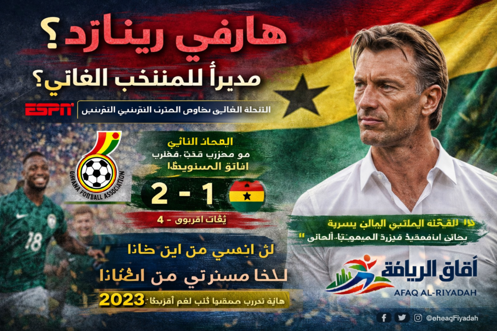 دخل الاتحاد الغاني لكرة القدم في مفاوضات مع الفرنسي هيرفي رينارد، مدرب المنتخب السعودي الأول، من أجل تولي قيادة المنتخب الغاني بداية من كأس العالم 2026 في الولايات المتحدة والمكسيك وكندا، وذلك وفقًا لما ذكرته شبكة ESPN الأمريكية.