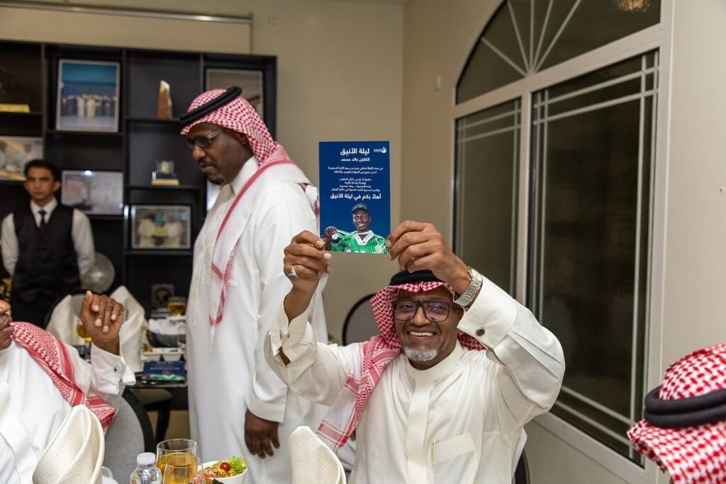احتفت جمعية أصدقاء لاعبي كرة القدم بالنجم الدولي المعتزل خالد مسعد في أمسية وفاء مميزة حملت عنوان «ليلة الأنيق»، وذلك بحضور نخبة من رموز الكرة السعودية، يتقدمهم ماجد عبدالله ومحيسن الجمعان وسعيد العويران وسعود الحماد، في مقر الجمعية بمدينة الرياض، وسط أجواء احتفالية عكست حجم التقدير لمسيرة أحد أبرز نجوم الكرة السعودية 🇸🇦⚽