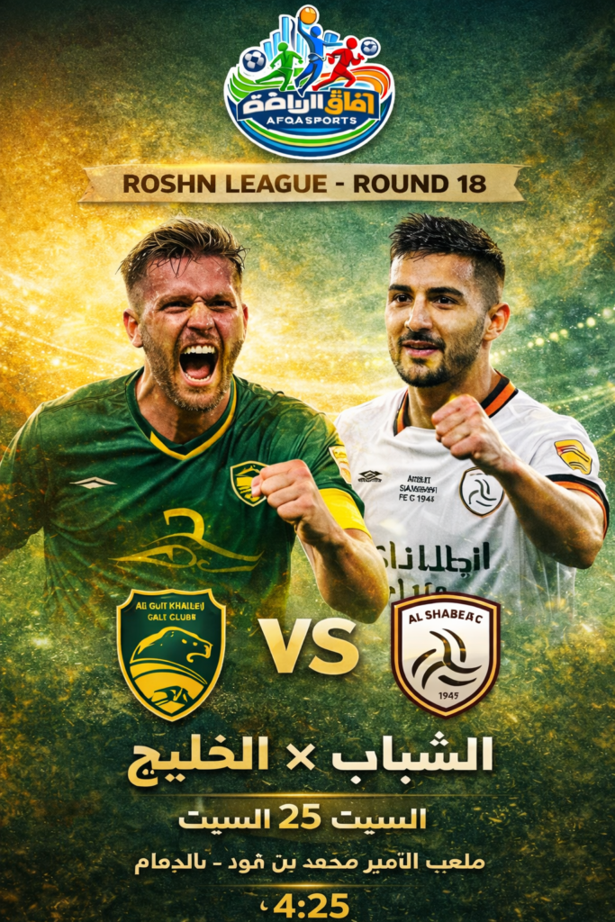 ويدخل الخليج اللقاء وهو في المركز الثامن برصيد 24 نقطة، باحثًا عن تعزيز موقعه، فيما يسعى الشباب، صاحب المركز الرابع عشر برصيد 12 نقطة، للعودة إلى سكة الانتصارات والخروج من مناطق الخطر.